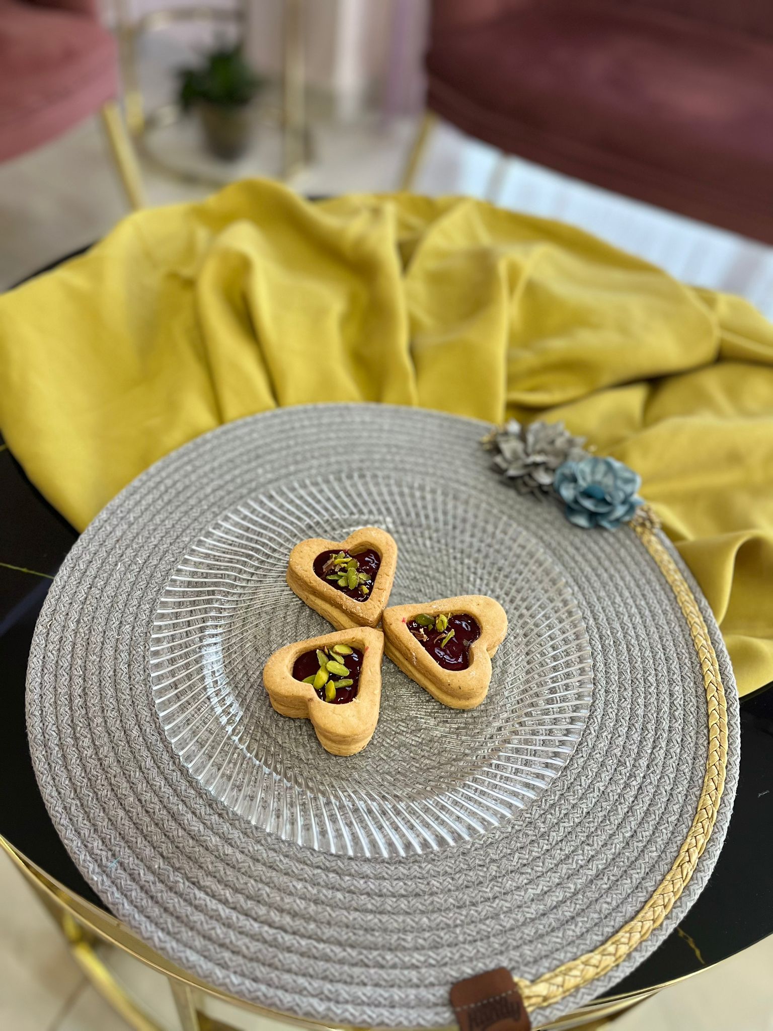 DecoHandy 39cm Çiçekli Jüt Örme Supla Amerikan Servis